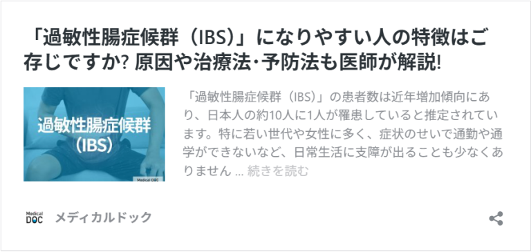 院長監修の記事が「Medical DOC」に掲載されました!「過敏性腸症候群」のお話です! event_note2025.10.21 「過敏性腸症候群(IBS)」になりやすい人の特徴はご存じですか? 原因や治療法・予防法も医師が解説! このたび、院長執筆の記事が「Medical DOC」に掲載されました。 ぜひ記...続きを読む