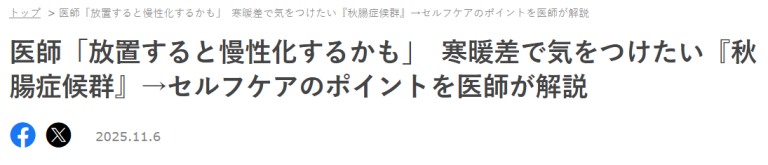 院長のYouTube動画が「TRILL」で紹介されました!「秋腸症候群」のお話です🍄 event_note2025.11.12 このたび、当クリニックのYouTube動画が「TRILL」の記事で紹介されました!ぜひご覧いただき、皆さまの健康にお役立ていただければ幸いです。もしよろしければ、チャンネル登録や高...続きを読む