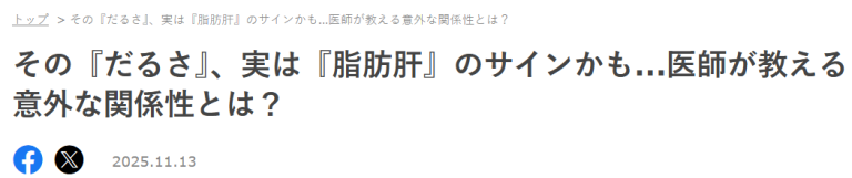 院長監修の記事が「TRILL」に掲載されました!「だるさ」のお話です! event_note2025.11.13 このたび、院長監修の記事が「TRILL」に掲載されました。 ぜひ記事をご覧いただき、多くの方にお役立ていただければ幸いです! その『だるさ』、実は『脂肪肝』のサインかも…医師が教え...続きを読む