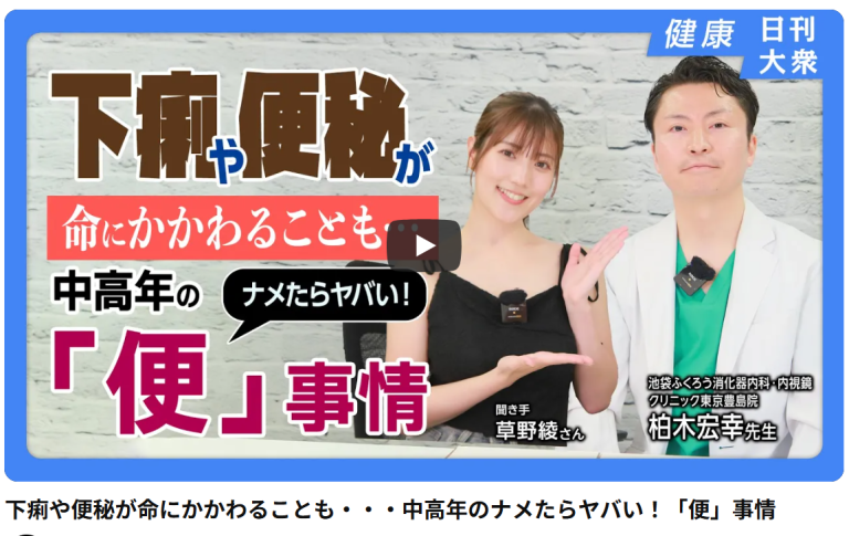 この度、院長が人気チャンネル「日刊大衆ミドルテック」のYouTubeに出演し解説しております!誰もが気になる「おなら・便」の悩み、専門医が答えます! event_note2025.11.13 この度、当院の院長が人気チャンネル「日刊大衆ミドルテック」のYouTubeに出演いたしました! 「下痢や便秘が命にかかわることも...中高年のナメたらヤバい!『便』事情」 誰もが経...続きを読む