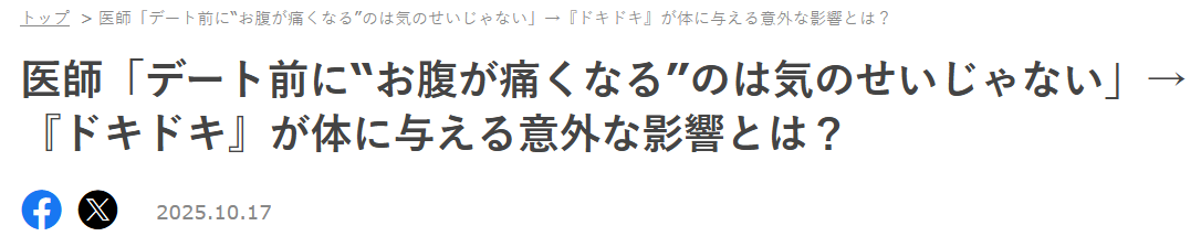 医師「デート前に“お腹が痛くなる”のは気のせいじゃない」→『ドキドキ』が体に与える意外な影響とは? | TRILL【トリル】