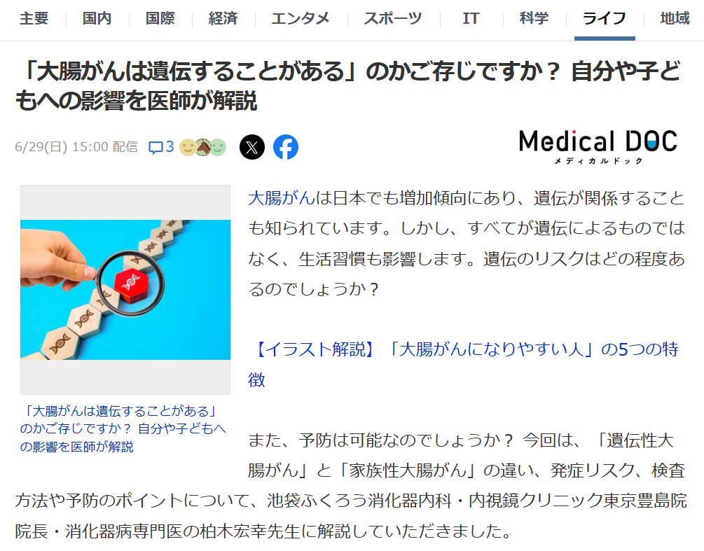 「大腸がんは遺伝することがある」のかご存じですか? 自分や子どもへの影響を医師が解説(メディカルドック) - Yahoo!ニュース